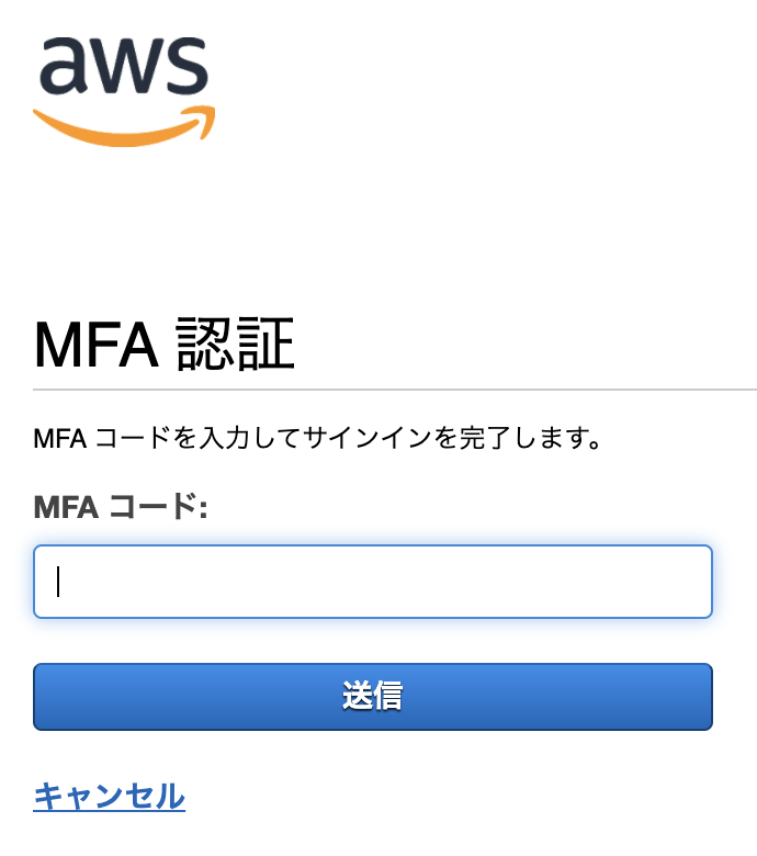 "MFA コード"欄にMFAデバイスに表示されている6桁の数値を入力します。