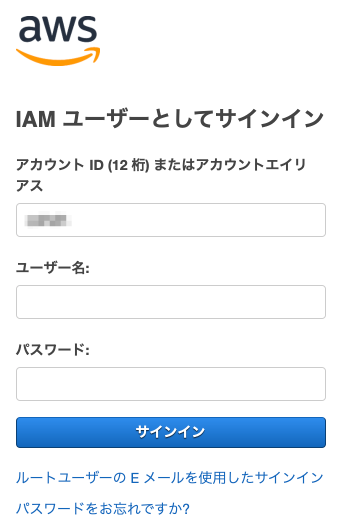 IAMユーザーとしてサインイン 画面