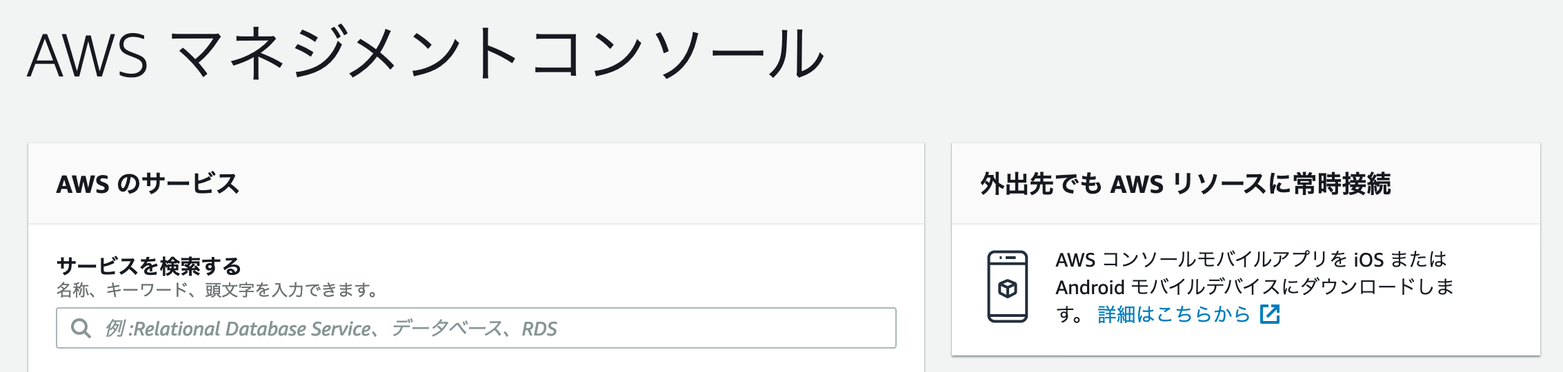 AWSマネジメントコンソールにサインインできたことを確認します。 表示(例): AWSマネジメントコンソール¶